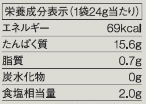 139kcalでたんぱく質15.9g、脂質は3.4g(カレー味の場合)の高たんぱく質低脂質なおやつ